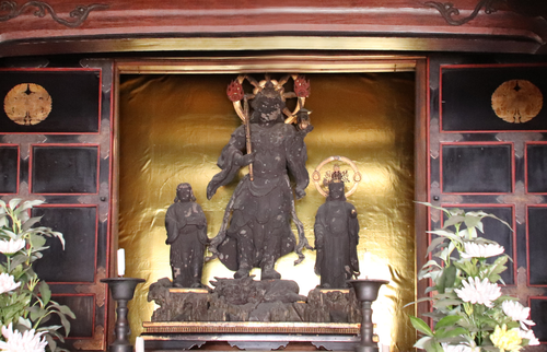 令和四年春に初公開をした毘沙門天を、特別にご開帳いたします。慈受院の毘沙門天王は毘沙門天・吉祥天・善膩師童子の三体のご家族がそろっている珍しい立像です。